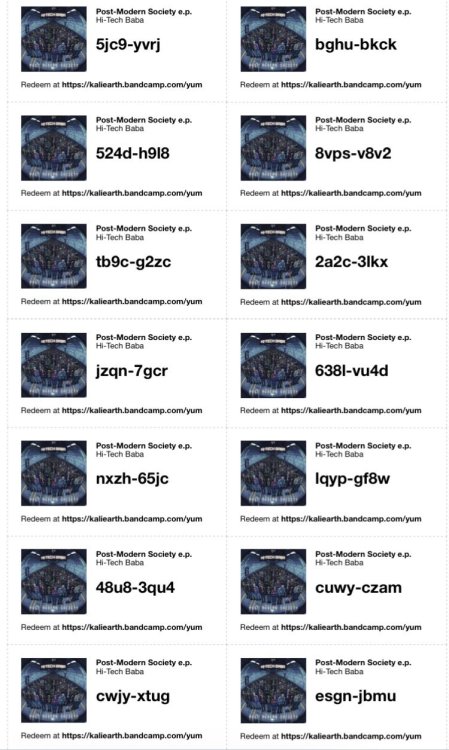 Hi ppl, so here’s another batch of Free codes, this time for the brilliant EP by Hi-Tech BABA from India! Enjoy. You can redeem your code here: https://kaliearth.bandcamp.com/yum And visit his own BC-page here! KER 📱 -