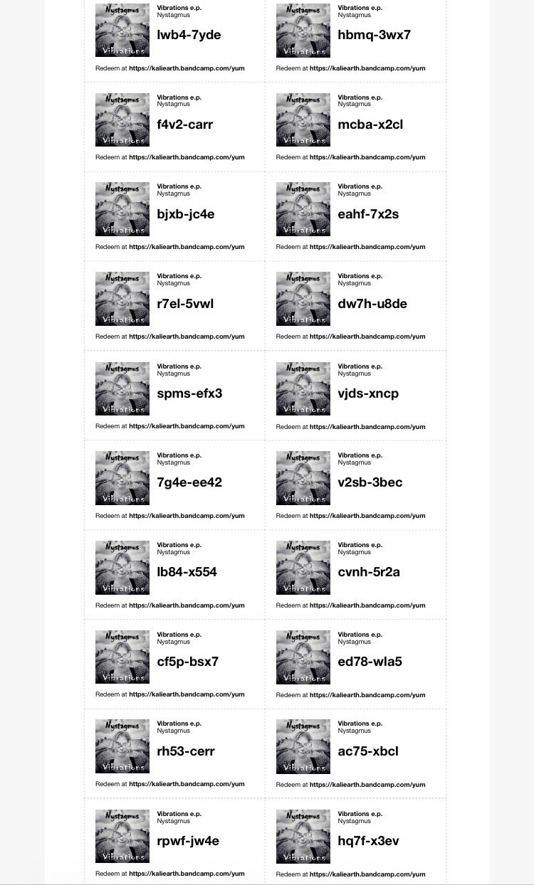 Hi! So here you go, Fine 🍡 Bandcamp has til date because of purchases done by you Fans, awarded KER with a numbing _ 10 400 _ Digi. Free-Codes ! It’s a lot, and we know music sales these days for the very most counts for most some Producers, as vital - Promotion. Gigs. So ta da da this year as a nice promo-stunt there’ll be free KER Cat.# rls give-aways every week. Invite your psytrance friends to join the ker-follow here Kali Earth Records on Bandcampto catch ‘em all sporadic code drops >> Starting with a freeash one from the Hodd. brEAk … CD n’ vinyl availablefor purchase here! Insert code from attached scrnsht in theis URL. https://kaliearth.bandcamp.com/yum XXPSY promotion; Plz do 😁 ask your Festival etc. party of choice to book your fav. KER Artist/Producer/Musician 🤗 … like e.g. tru live-set vice, Material Music. Katastrof was good shit in the North of Norway, A10N here n’ there, Overdream in the Fjords .. osv. Expect the unexpected, KER 🌲🌴🎪🌳🎄