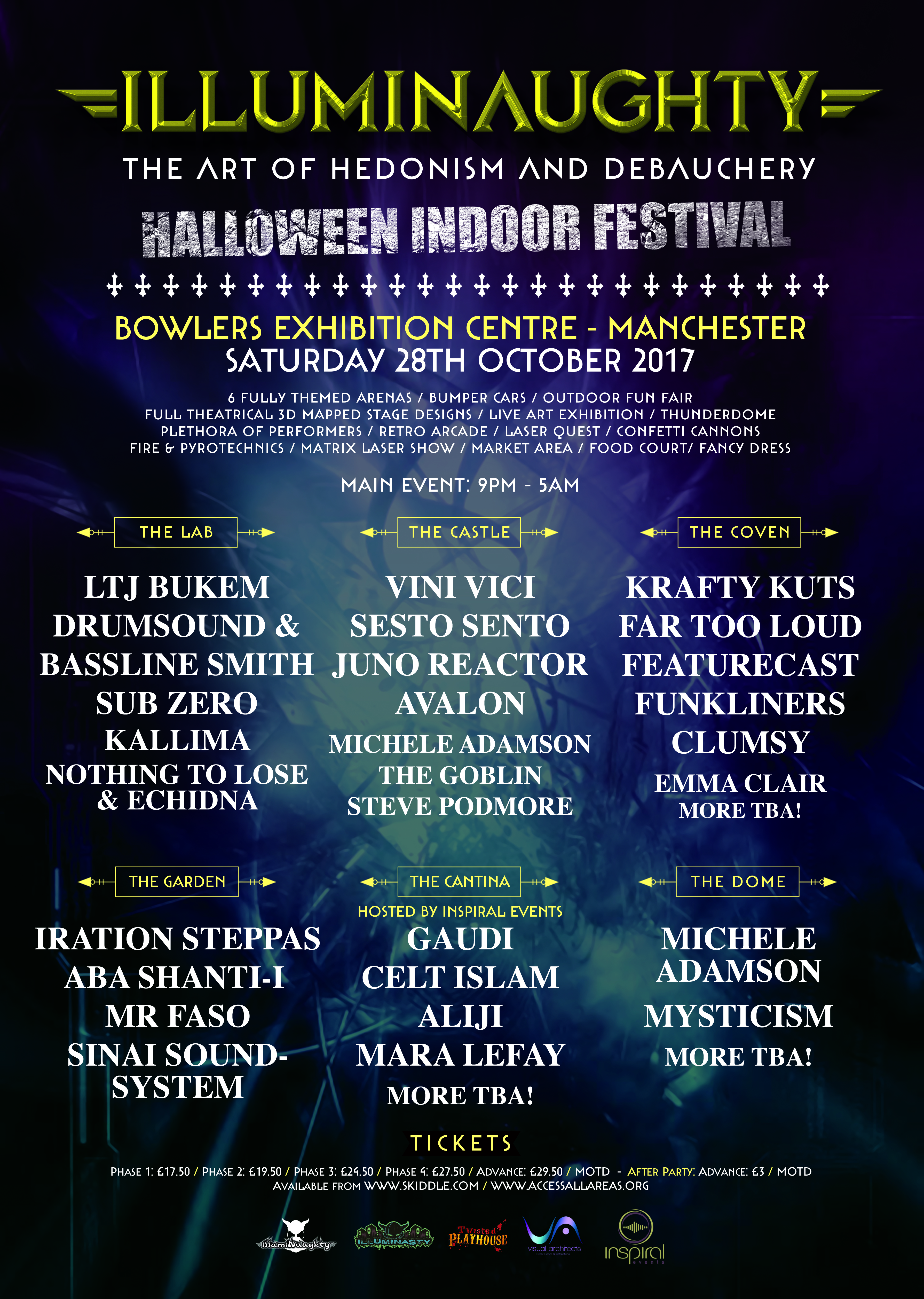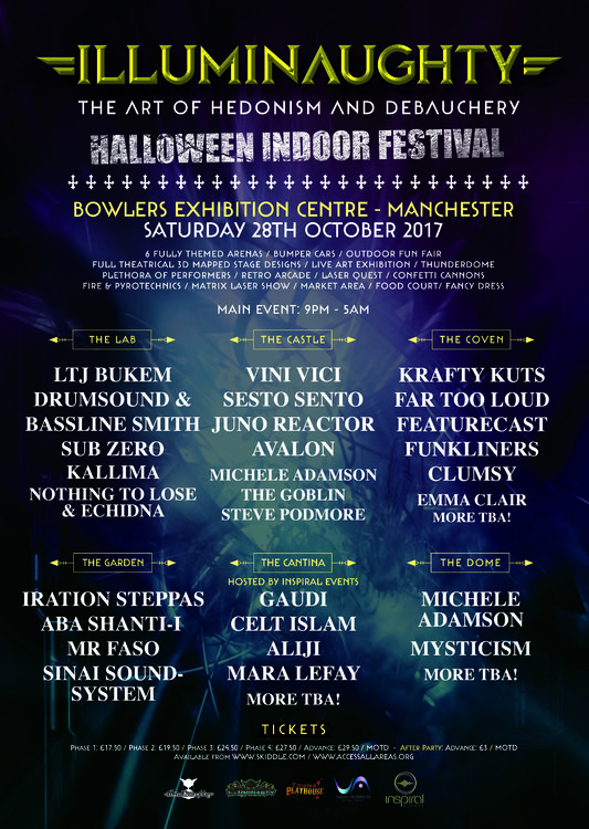 illumiNaughty Posted October 11, 2017 Posted October 11, 2017 Join The Goblin and all his characters as the story unfolds revealing another chapter in the IllumiNaughty story… This Halloween expects to see: 6 rooms each with a unique sound and character, Stage performers running from start to finish, Bowlers transformed into a hectic Halloween paradise with decor from Visual Architects! Uniquely designed stages with lighting and visuals and enough music and entertainment to keep you going to 5am This is planning to be the biggest year to date for IllumiNaughty and we will be pushing the bar high for the carnival of chaos as we present to you UNDERWORLD 6 Fully themed arenas / Bumber cars / Outdoor Fun fair / Full Theatrical 3d Mapped stage Designs / Live art Exhibition / Thunderdome / Plethora of performers / Retro arcade / Laser Quest / Confetti Cannons / Fire & Pyrotecnics / Matrix Laser show / Market Area / Food Court / Fancy Dress FULL LINE UP RELEASED -- THE CASTLE (PsyTrance)-- Vini Vici Sesto Sento Juno-Reactor Avalon The Goblin Michele Adamson Steve Podmore - THE LAB (Drum n Bass)- LTJ Bukem DJ Drumsound & Bassline Smith Sub Zero (Official Fan Page) Kallima Nothing to Lose & Echidna - THE COVEN (Breaks ElectroSwing Vintage remix)- Krafty Kuts Far Too Loud Featurecast Funkliners DJ Clumsy Madhatter Emma Clair - THE GARDEN (Reggae Dub) - Iration Steppas Official Aba Shanti-I MR FASO Sinai Sound System - THE CANTINA – Hosted by Inspiral Events (Psychedelic Electronic) GAUDI Celt Islam Aliji Mara LeFay Aztekh - THE DOME (Chillout) - Michele Adamson Mysticism + many more Get your tickets now: Skiddle: https://goo.gl/jDkUUZ AAA: https://goo.gl/U5xUJ4 Resident Advisor: https://goo.gl/xuwikm Fatsoma: https://goo.gl/UWZXyz TicketArena: https://goo.gl/Qzreqg TheTicketSeller: https://goo.gl/v3FkLC GET INVOLVED WITH ILLUMINAUGHTY : DJ Competition : https://www.facebook.com/events/349068562178162 Play at illumiNaughty : http://bit.ly/2tJ2qX9 Put your stall at IllumiNaughty : http://bit.ly/illuminaughtystalls Performance : http://bit.ly/2to7cK3 Street Team : http://bit.ly/streetTeam2017 Photographers and Videographers http://bit.ly/MediaIllumiNaughty2017 Volunteers on the night : http://bit.ly/29HKRBT Phase1: £17.5 SOLD OUT Phase2: £19.5 SOLD OUT Phase3: £24.5 SOLD OUT Phase4: £27.5 SOLD OUT Phase5: £29.5 On Sale until the 14th of October Advanced tickets £33.50 on sale for the last 2 weeks More On The Door After Party: Advance: £3 / MOTD Quote